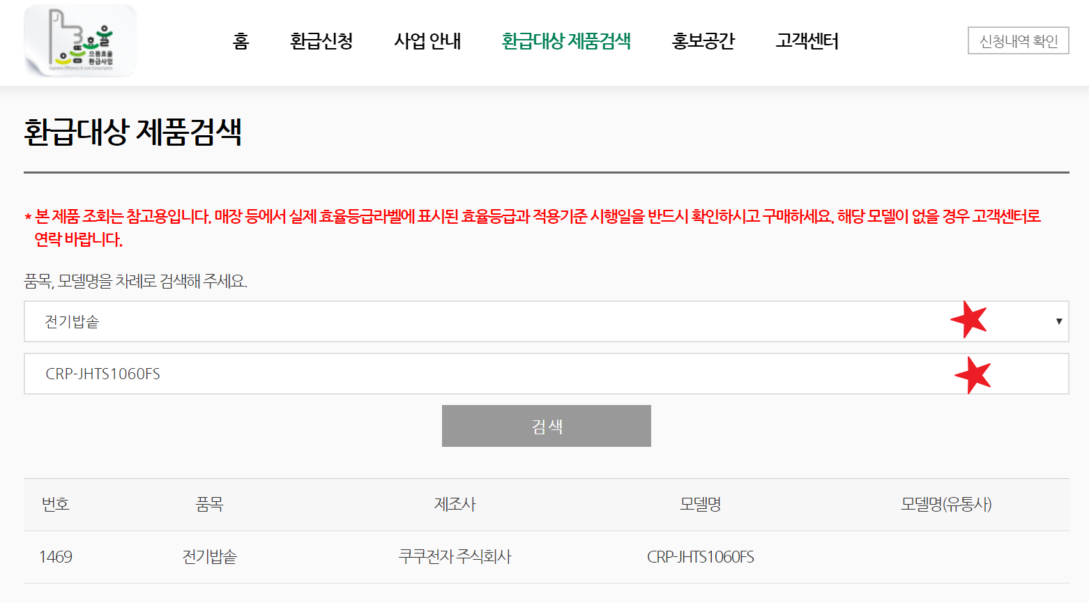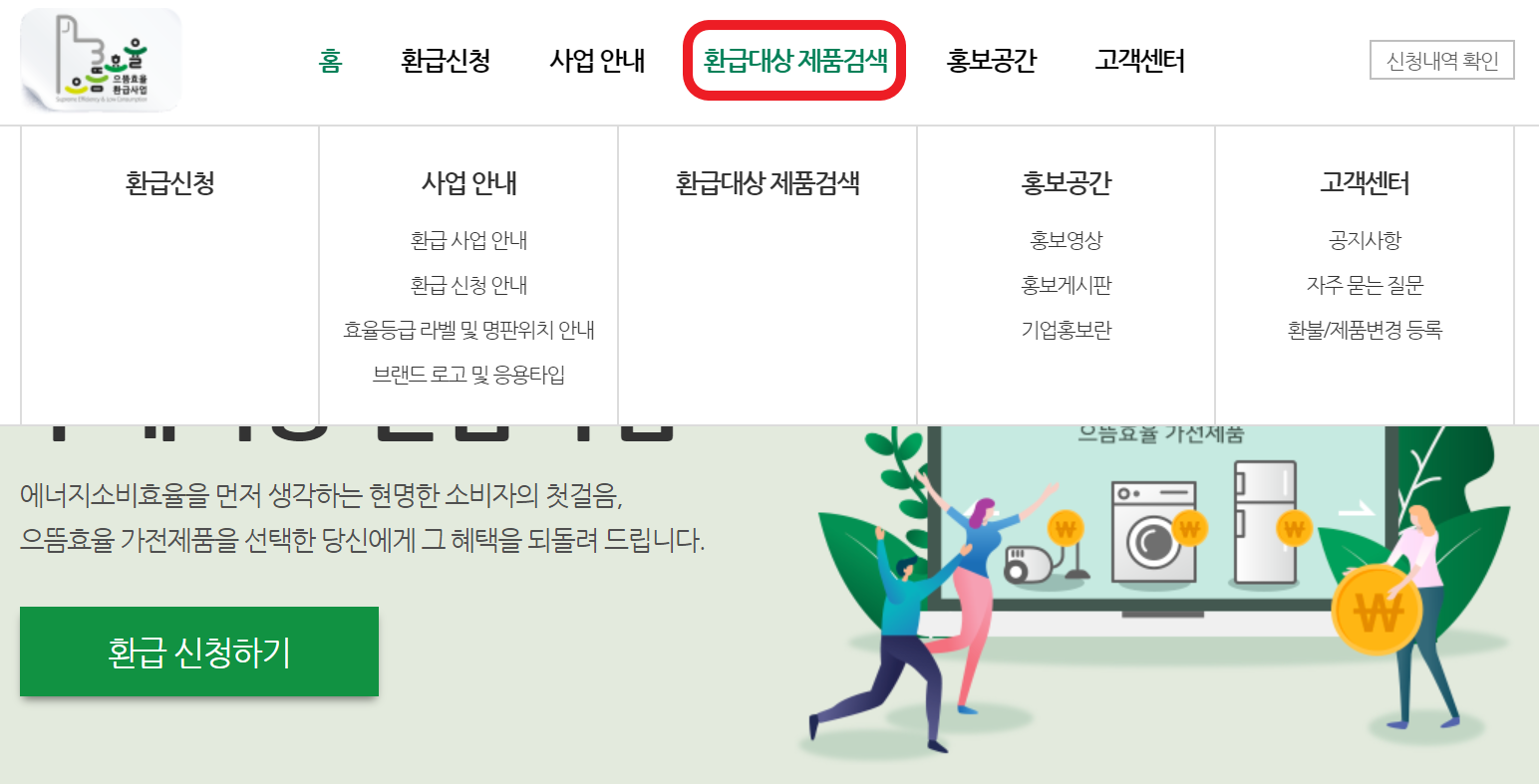 ★1. 으뜸효율 가전제품 구매비용 환급사업 공식 홈페이지 → 환급대상 제품검색