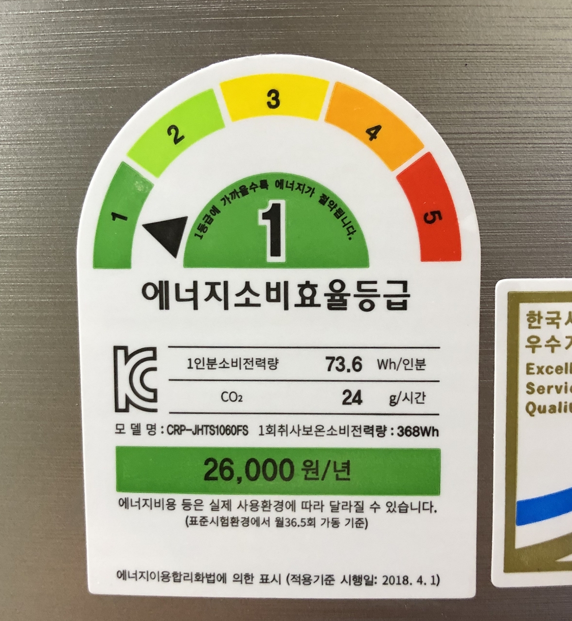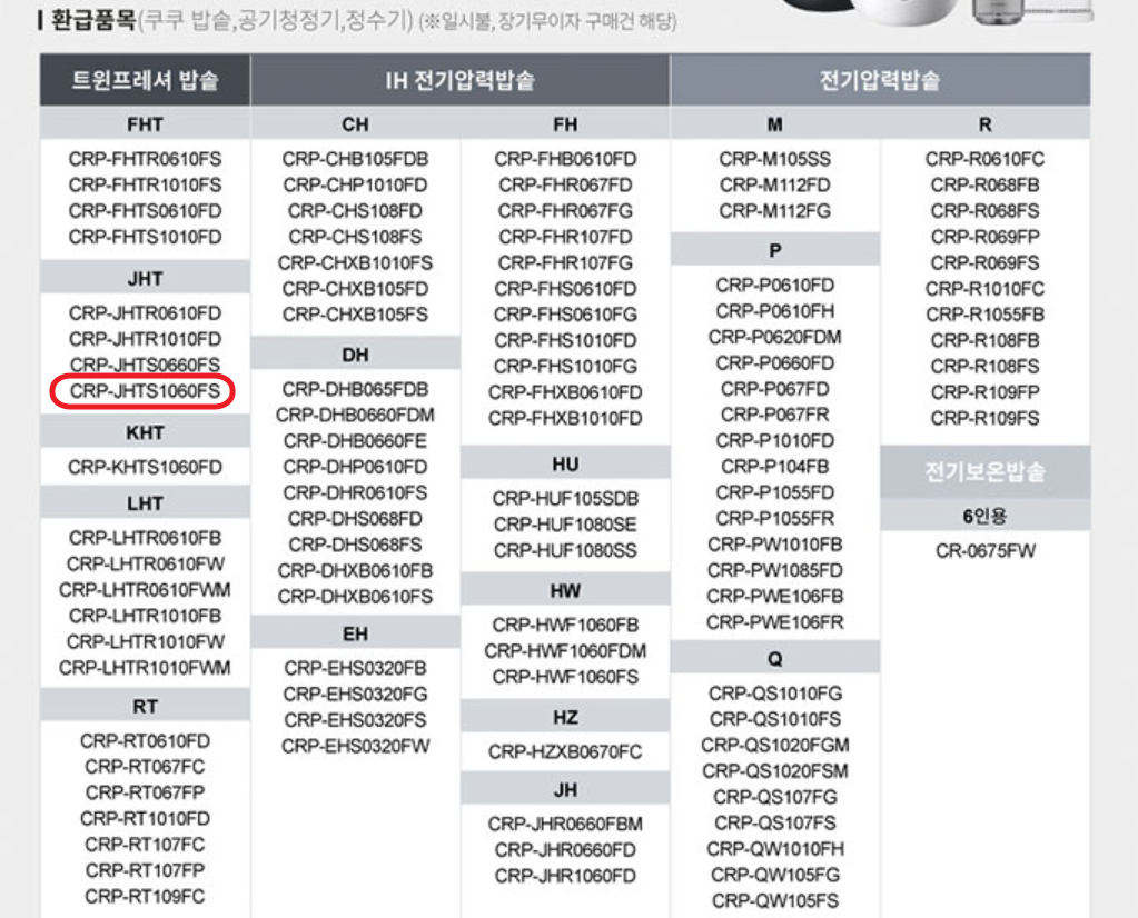 에너지소비효율등급이 우수한 제품을 구매하면 10% 환급을 해준다는 내용이었습니다. 제가 구매한 쿠쿠 밥솥(CRT-JHTS1060FS)은 환급 가능 제품이었습니다.