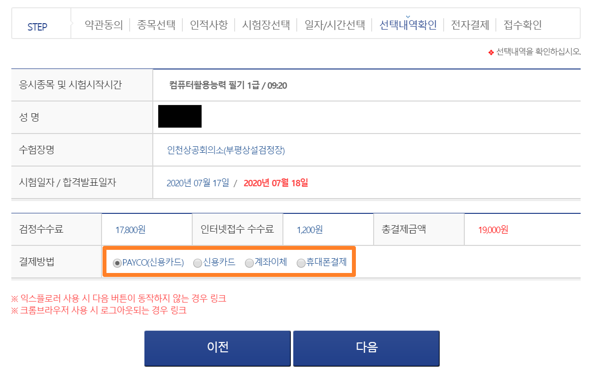▶컴활 1급 상시시험 접수비 : 19,000원(검정수수료 17,800원 + 인터넷접수 수수료 1,200원)