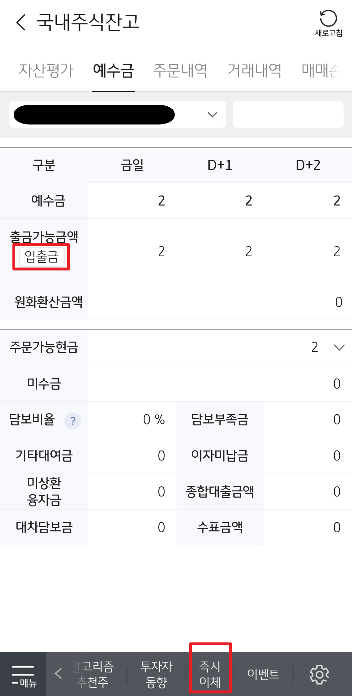 1. 예수금 - 입출금 버튼